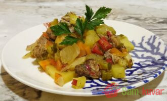 Povrće sa mesom pečeno u rerni — jednostavno i lagano jelo za ukusan i zdrav večernji obrok.