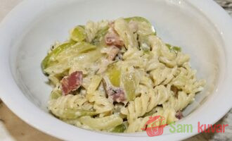 Ovaj recept za fusile sa slaninom i zelenom tikvicom je izvanredna varijacija paste koja će se posebno
