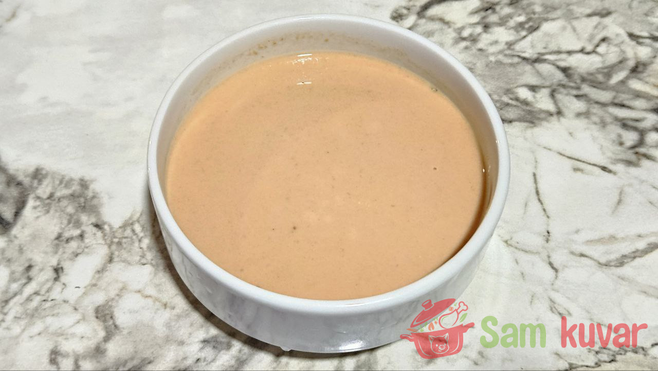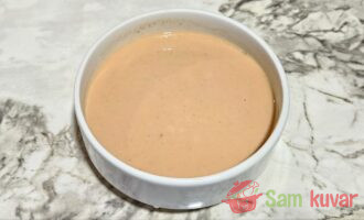 - Sada pripremite sos. U posudu stavite paradajz pastu, posolite, pobiberite, dodajte čašu vode i dobro promešajte dok se pasta potpuno ne rastvori. Na kraju dodajte pavlaku za kuvanje i mešajte dok sos ne postane ujednačen.