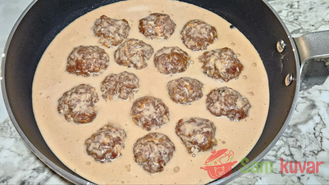 - Prelijte čufte sosom tako da sos skoro ili potpuno prekrije loptice. Ako nema dovoljno sosa, dodajte još vode.