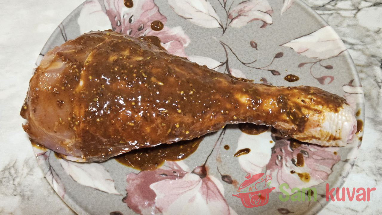 - Obilno i ravnomerno premažite batak ćuretine pripremljenom marinadom.