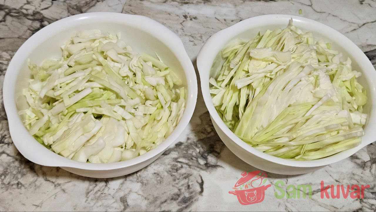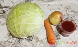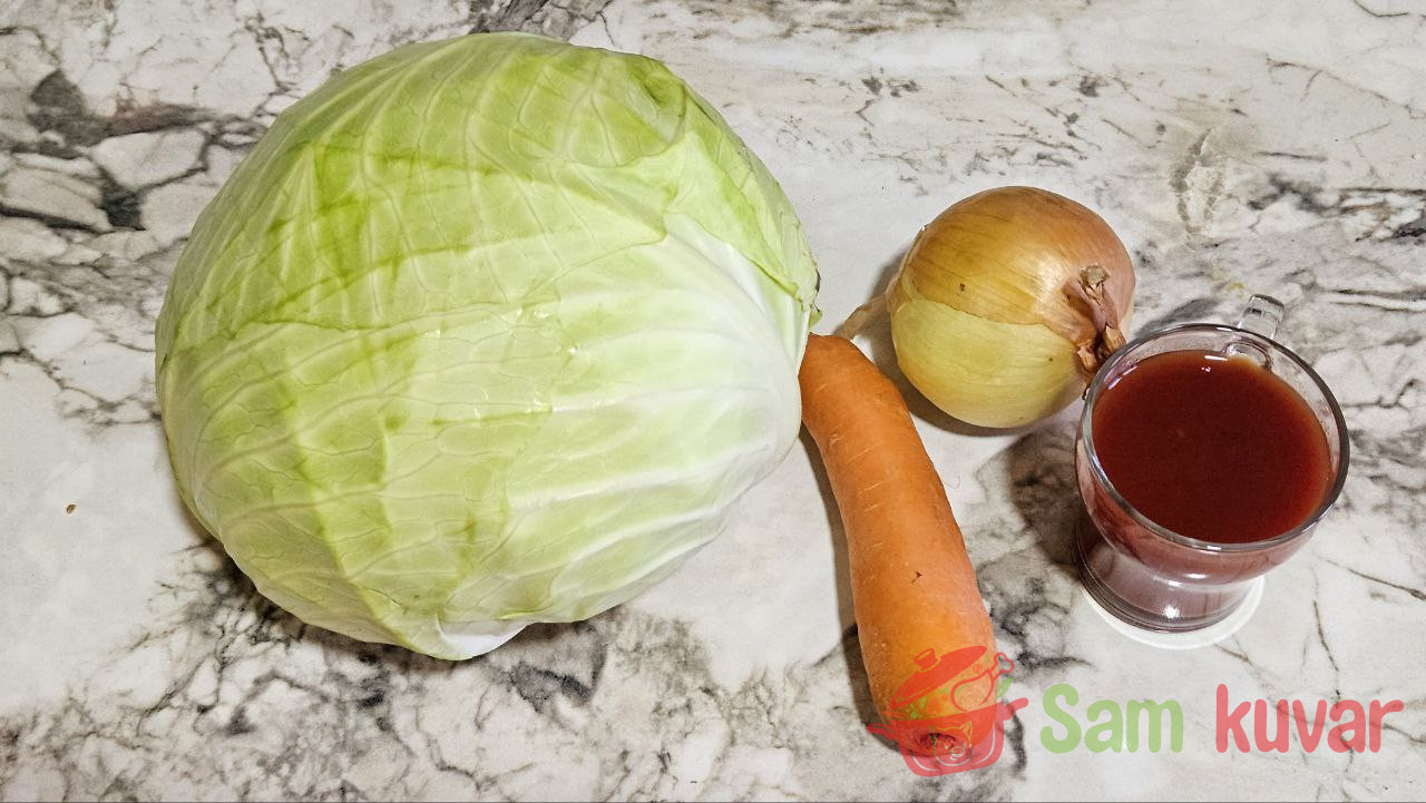 - Pripremite potrebne sastojke za pripremu dinstanog kupusa.