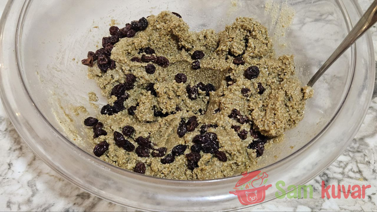- Ocedite vodu iz raisina i dodajte ih u halvu. Dobro promešajte.