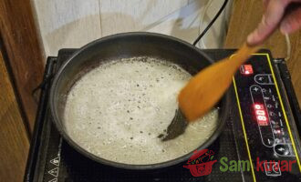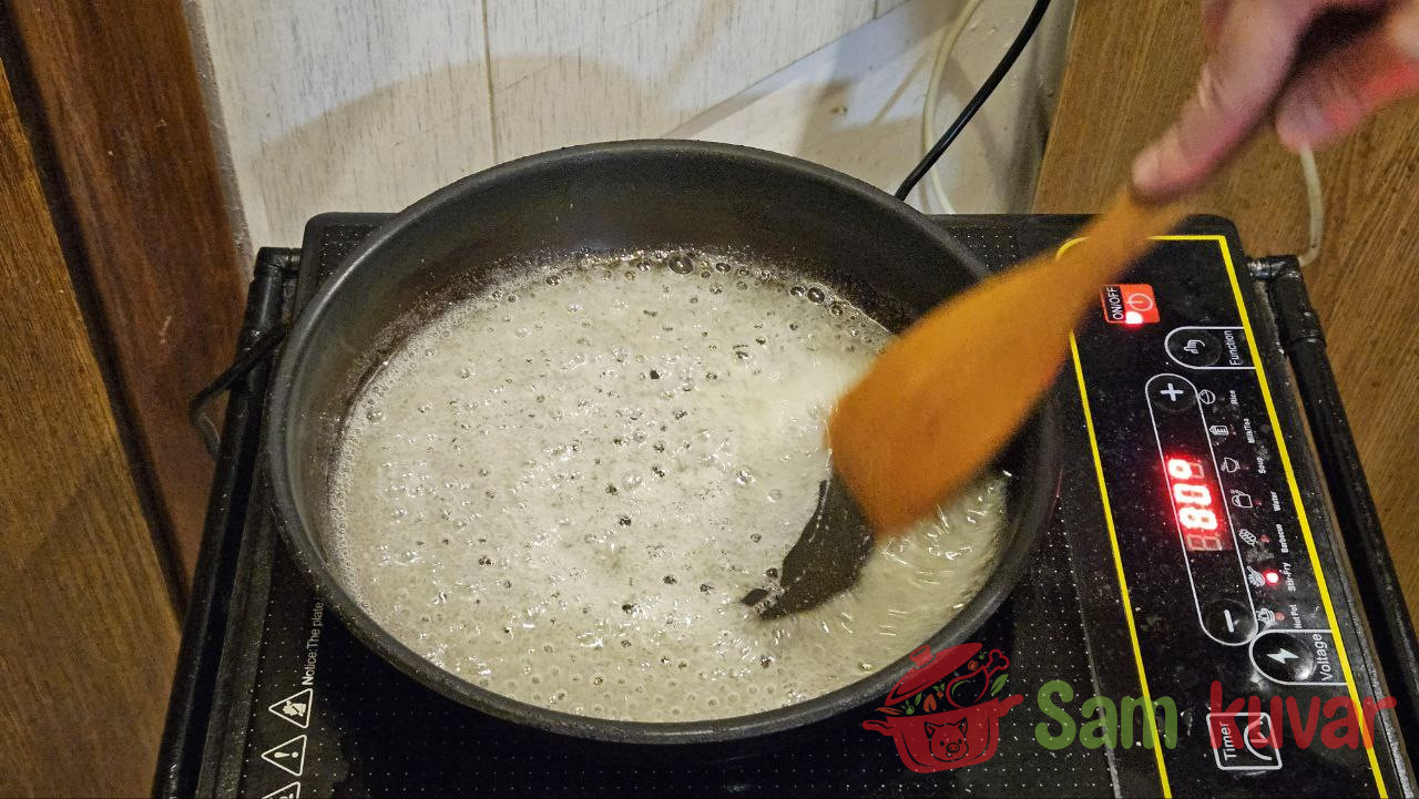 - U šerpi skuvajte karamel. Dodajte vodi šećer i kuvajte na laganoj vatri dok se ne pojave mehurići.