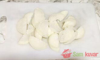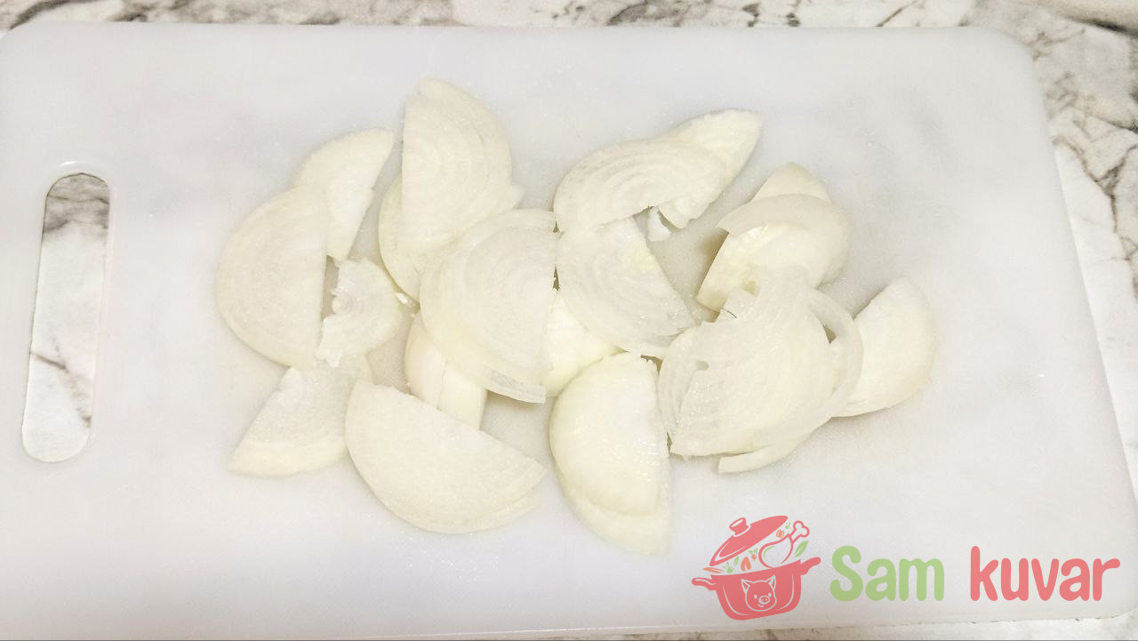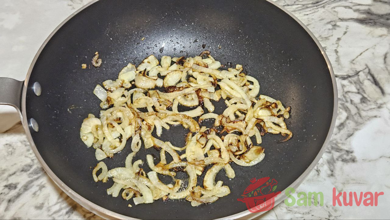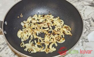 - Pržite luk na maslacu dok ne dobije zlatnu boju, zatim ga zajedno sa maslacem sameljite u blenderu.