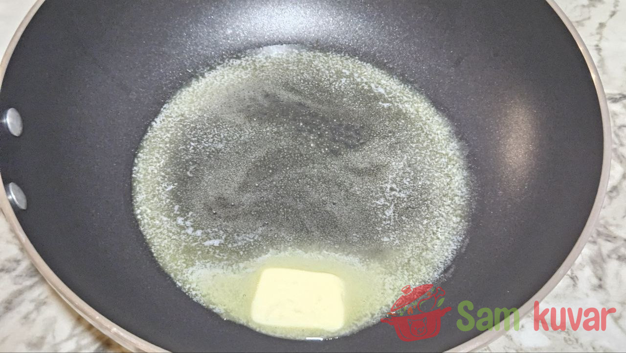 - Na zagrejanom tiganju otopite maslac.