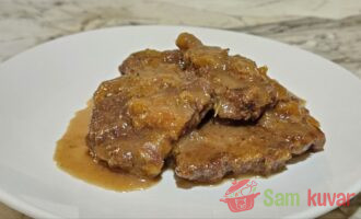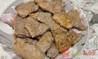 - Na tiganju sa malo ulja propržite komade mesa do polugotovog stanja. Izvadite meso na tanjir.