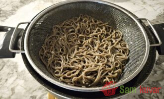 - Heljdinu soba testeninu skuvajte u kipućoj posoljenoj vodi 5 minuta, zatim je procedite i isperite hladnom vodom.