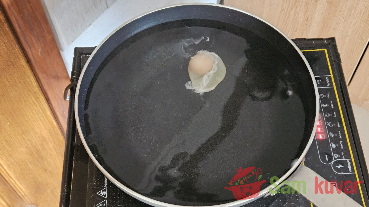 - Smanjite temperaturu vode na minimum. Voda ne sme da ključa. Spustite jaje u vodu i poklopite. Potrebno je sačekati 2–3 minuta.