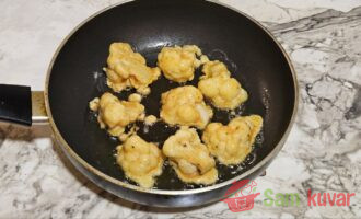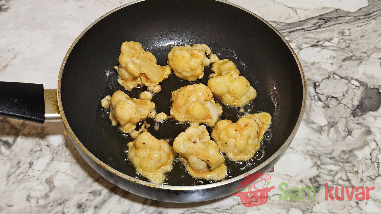 - Svaki cvet karfiola umočite u testo i stavite na zagrejanu tiganj sa uljem.