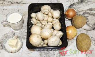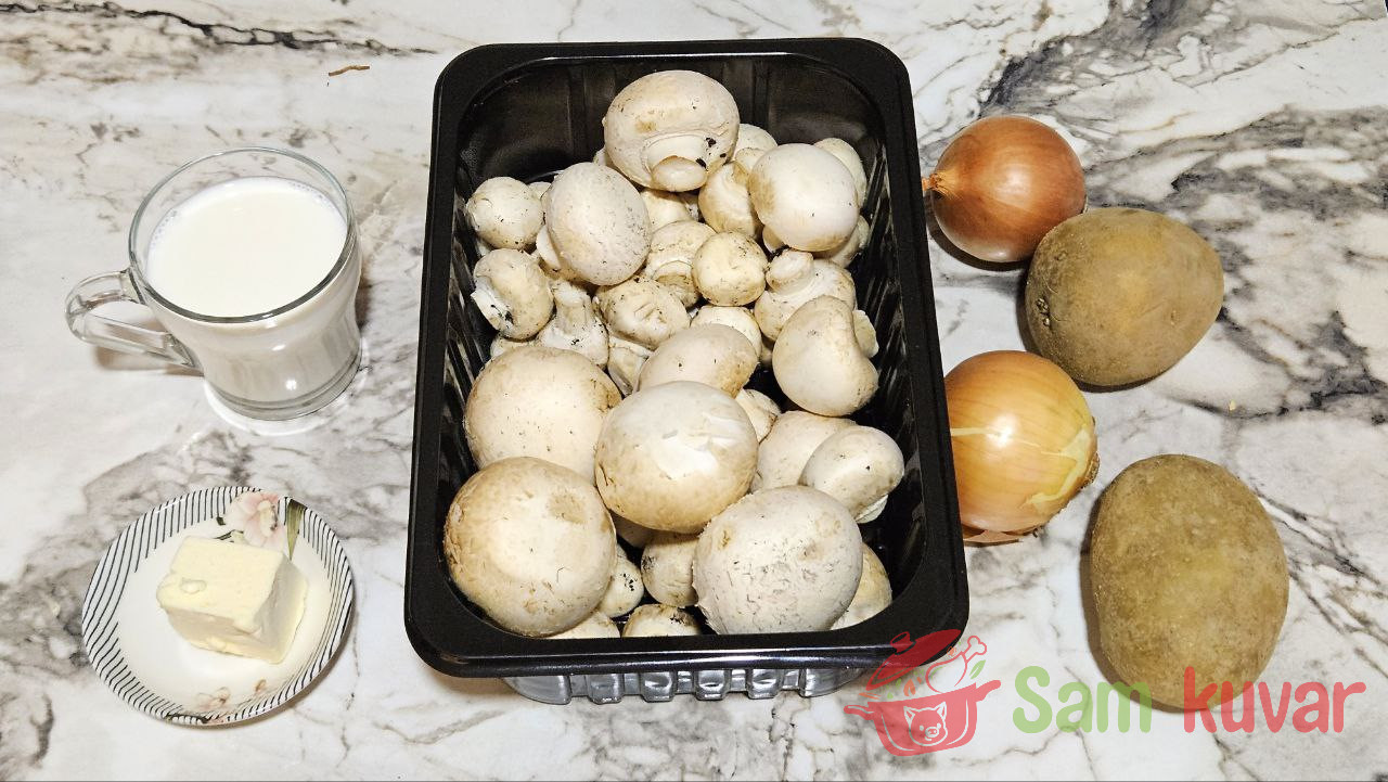 - Pripremite potrebne sastojke za pripremu krem supe od šampinjona.