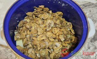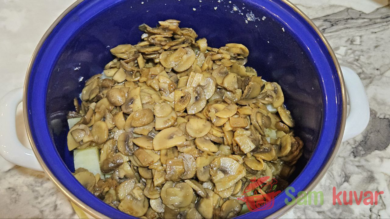 - Dodajte pržene pečurke krompiru.