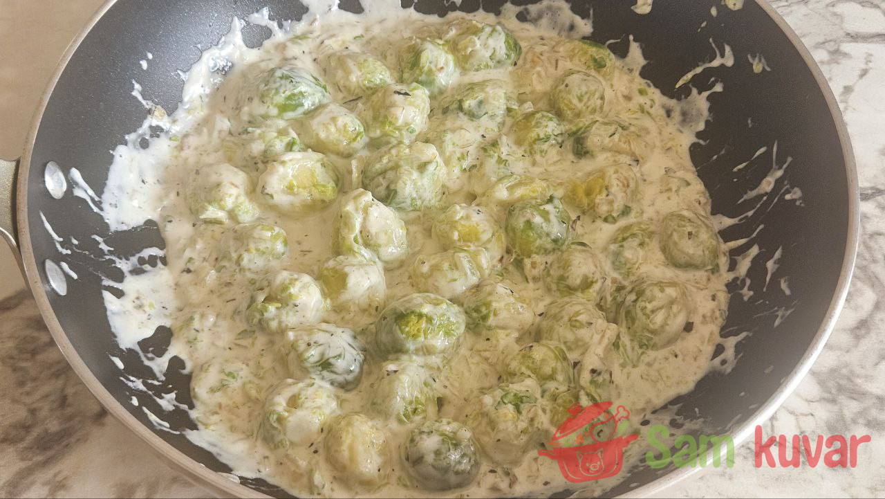 - Dodajte prokelj i dobro promešajte. Smanjite vatru i krčkajte pod poklopcem još 3 minuta.