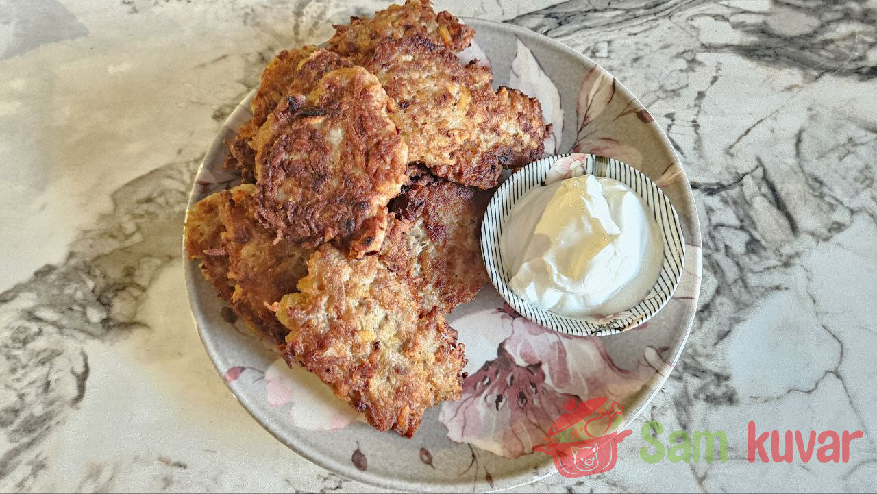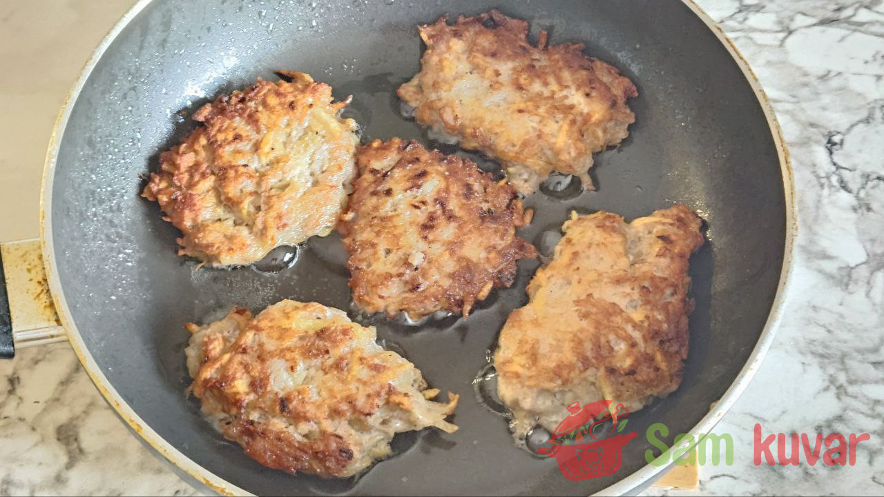 - Na zagrejan tiganj sa uljem stavljajte kašikom krompirastu smesu u obliku pljeskavica.