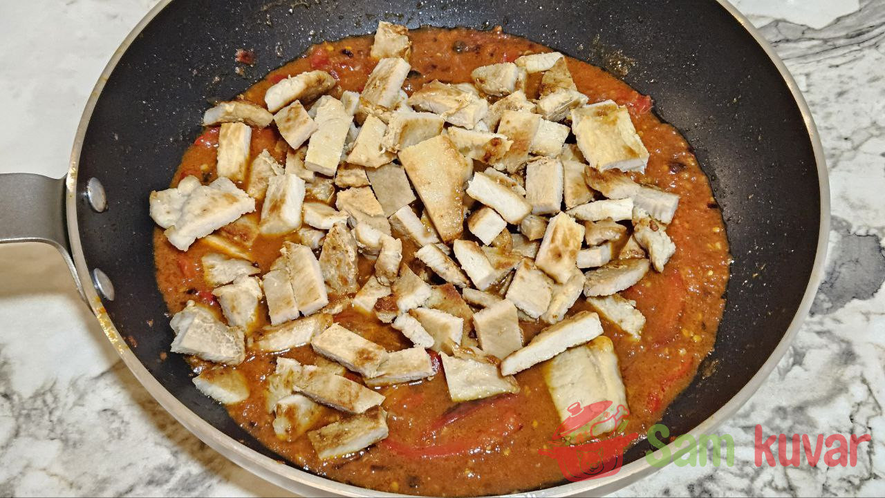 - Gotovo meso isecite na manje komade, ako je potrebno.