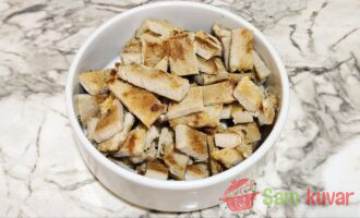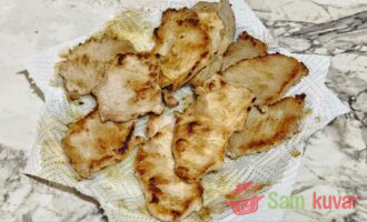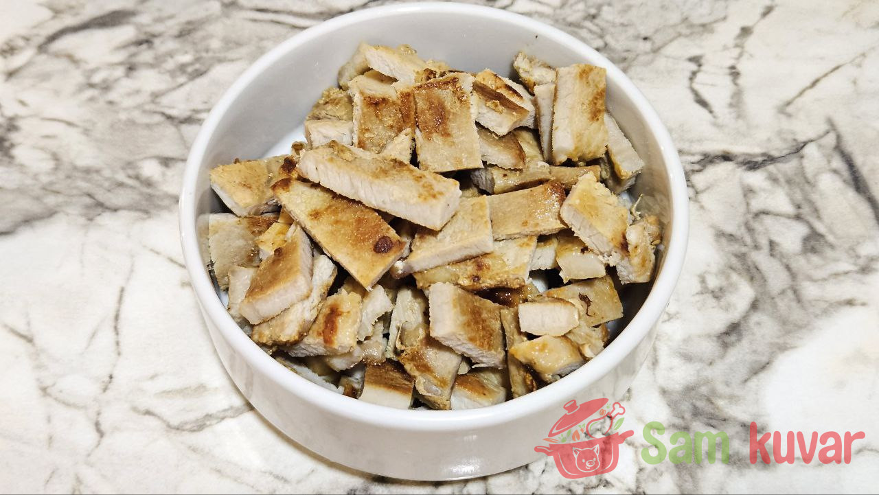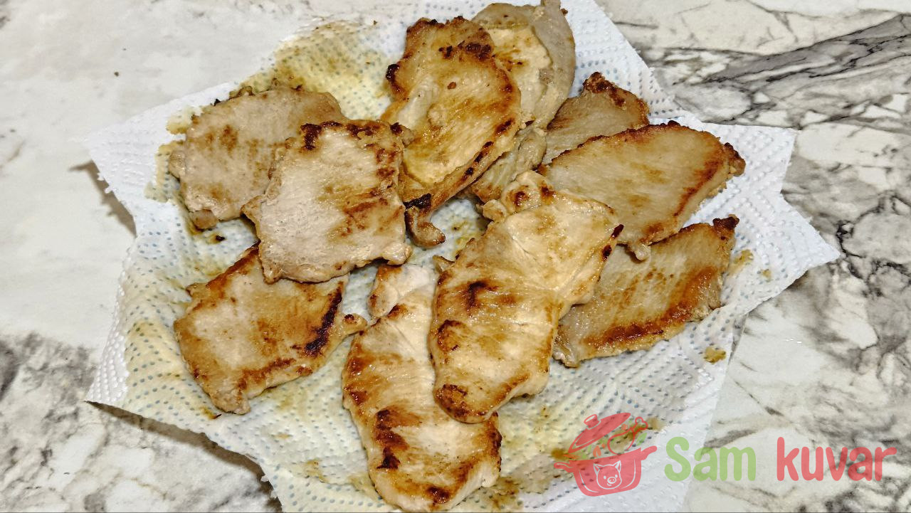 - Meso isecite na komade i posolite. Ispržite ga na tiganju ili na roštilju dok ne bude gotovo.