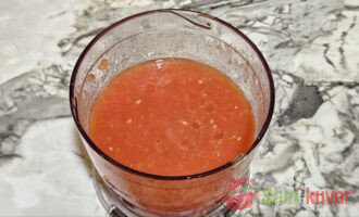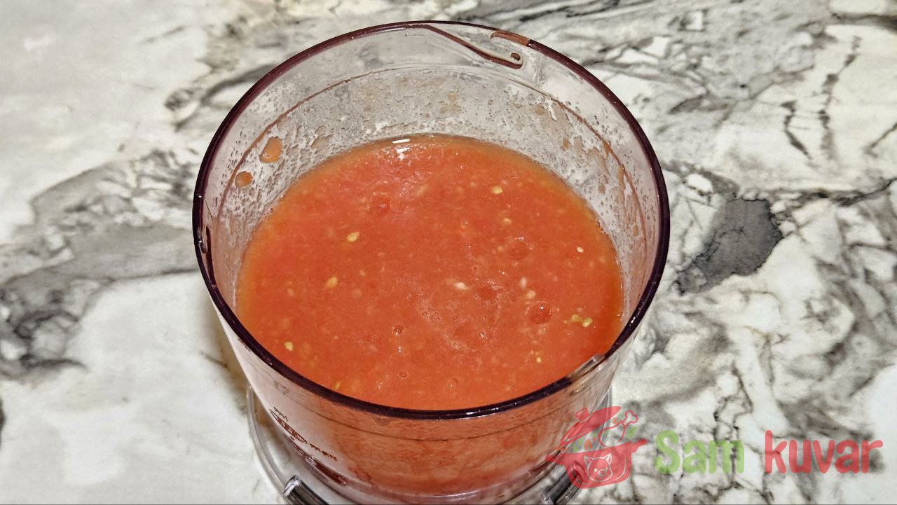 - U blender stavite paradajz i očišćen beli luk i sve zajedno usitnite.