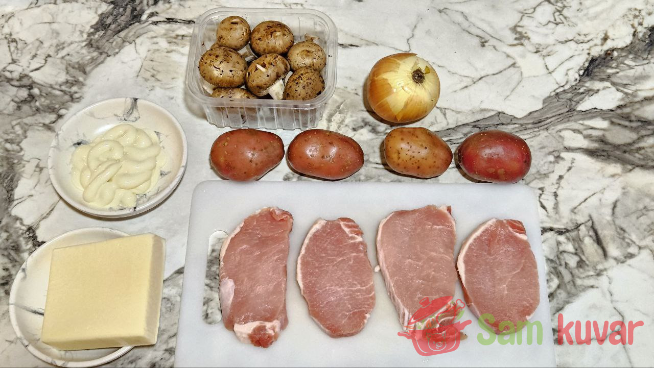 - Pripremite potrebne sastojke za pripremu mesa na francuski način.