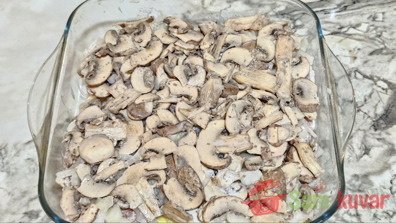 - Na luk stavite pečurke.