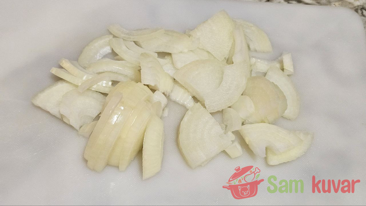 - Luk isecite na četvrtine kolutova.