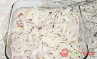 - Na meso rasporedite luk ravnomerno.