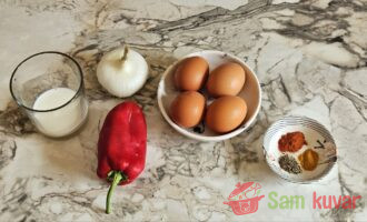 - Pripremite potrebne sastojke za omlet sa paprikom i slatkim lukom.