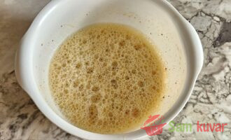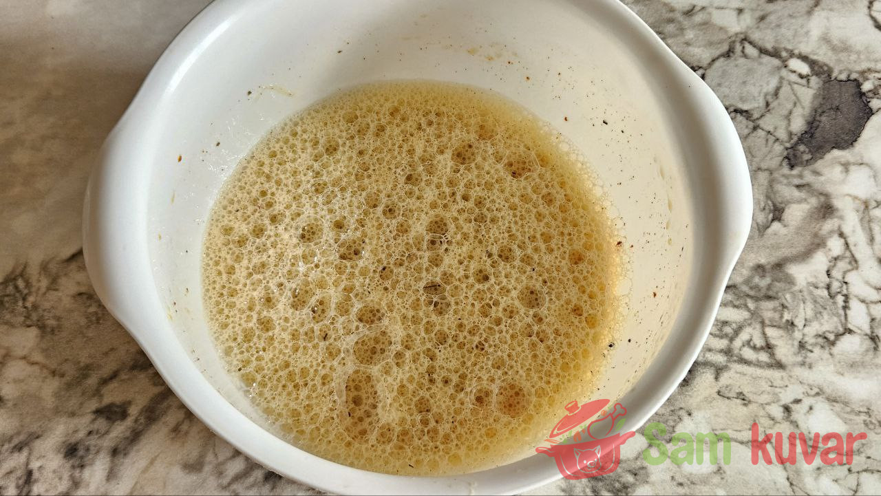 - Ulijte mleko u jaja i nastavite da mutite dok se ne pojavi lagana pena.