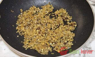- Dodajte pečurke i pržite dok ne omekšaju i dok ne ispari sva tečnost.