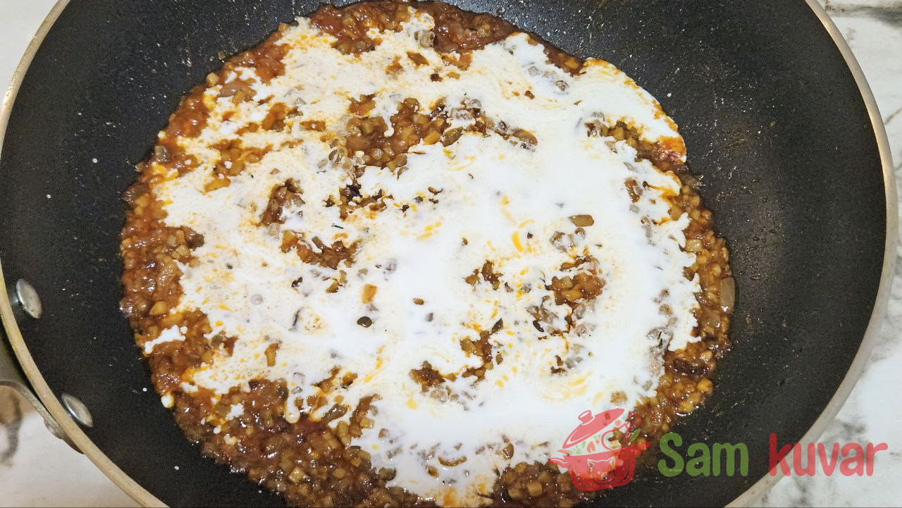 - Ulijte pavlaku za kuvanje, dobro promešajte i zagrejte do ključanja. Probajte sos i po potrebi dosolite.
