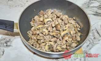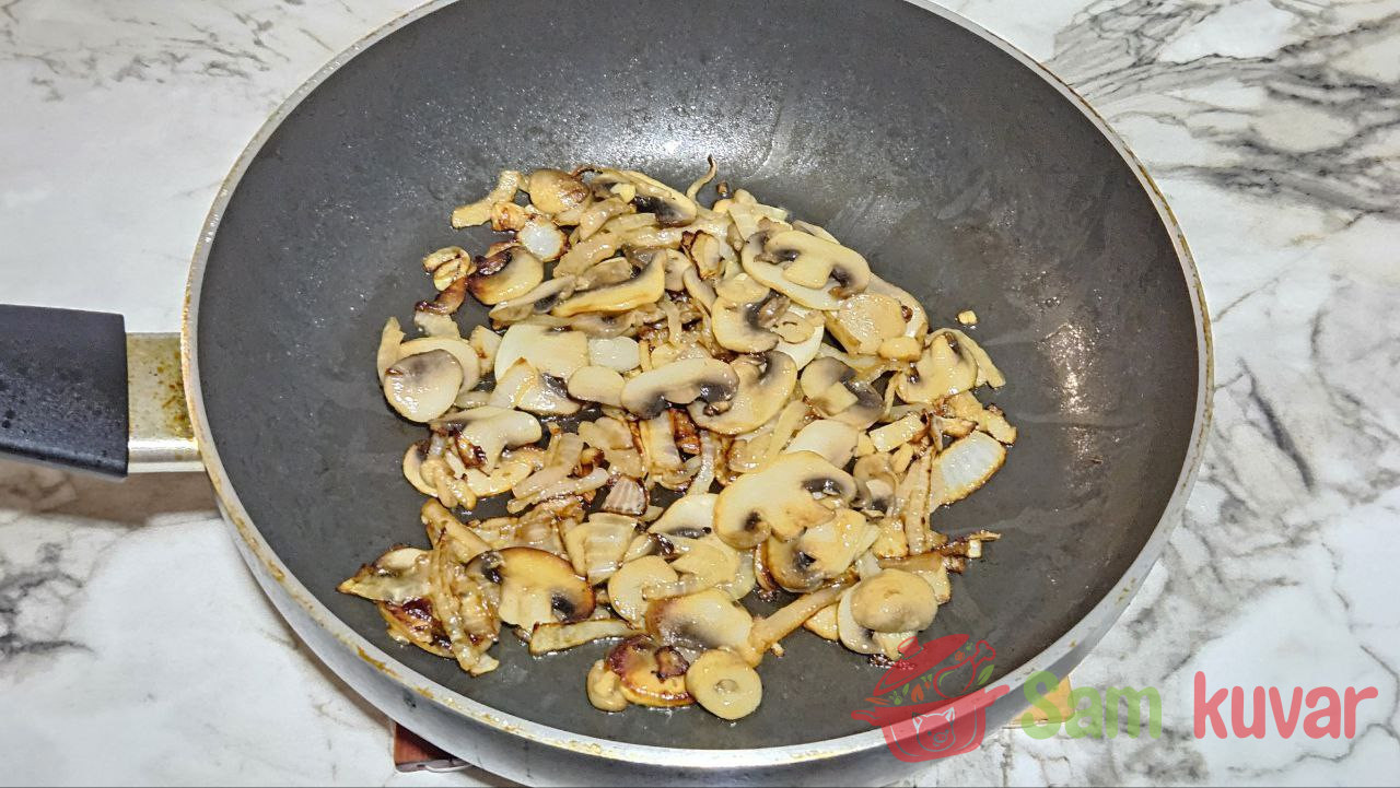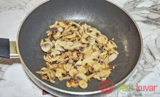 - Dodajte pečurke i pržite dok ne ispari višak tečnosti.