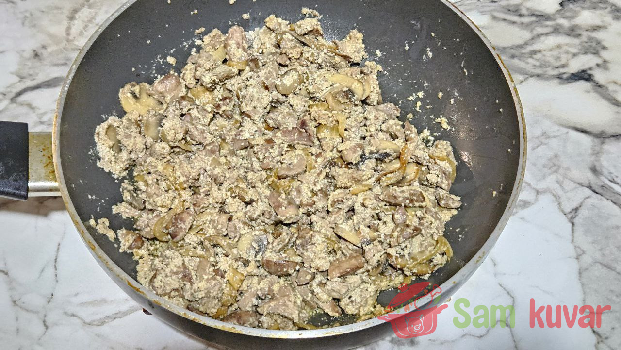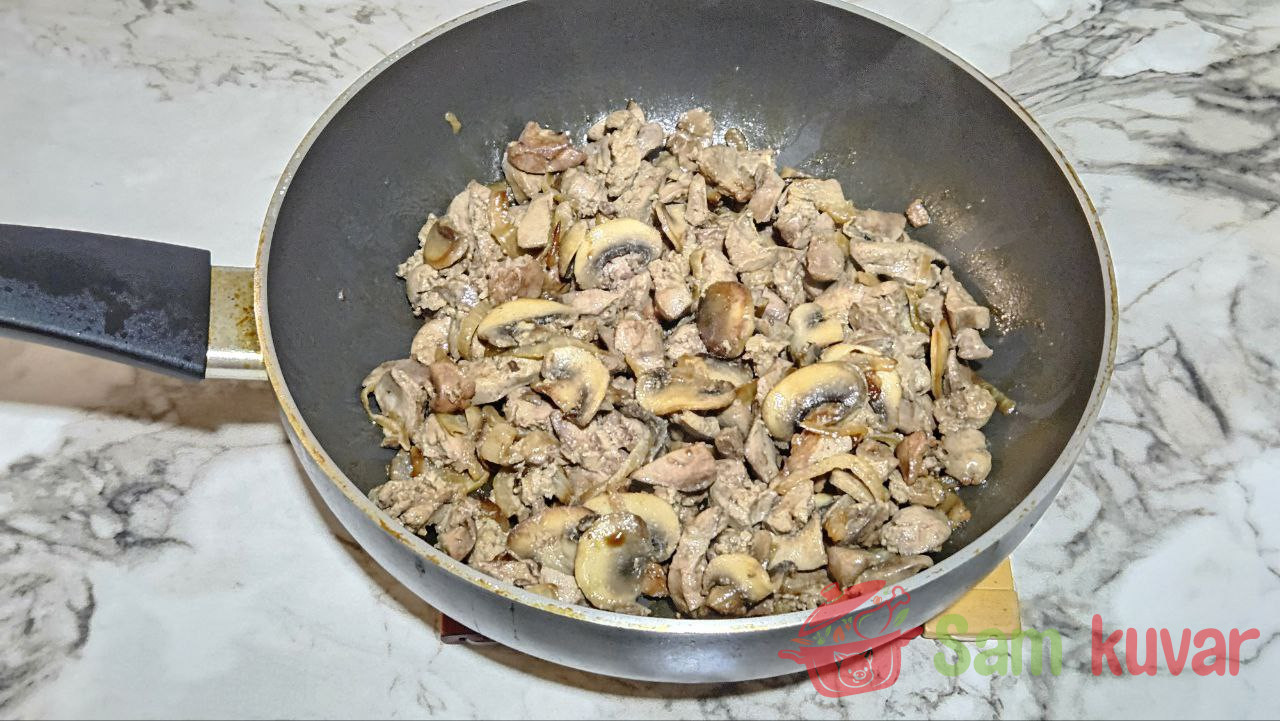- Dodajte pavlaku i dobro sjedinite sa džigericom i pečurkama.