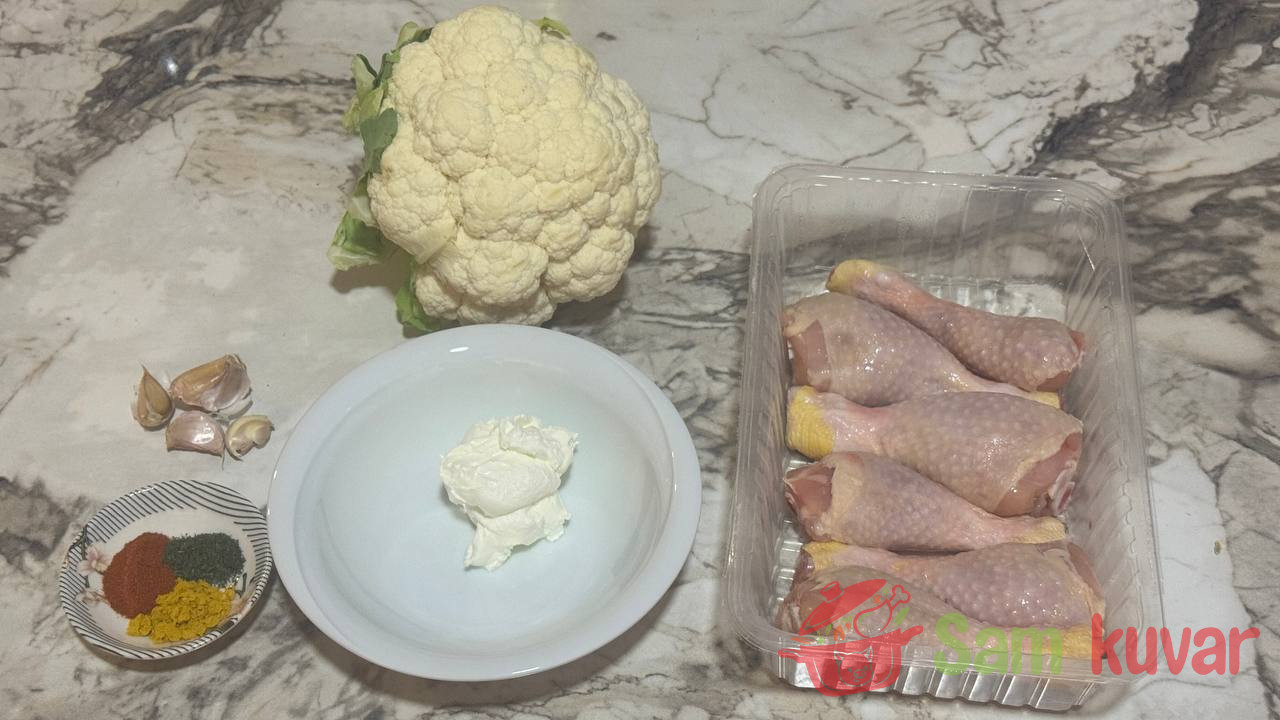 - Pripremite sve potrebne sastojke za pripremu pilećih bataka sa karfiolom.