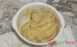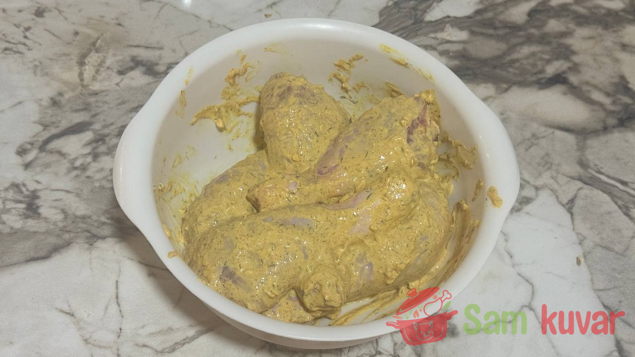 - Pileće batake premažite pripremljenom marinadom i ostavite da se mariniraju.