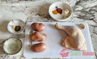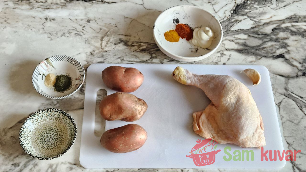 - Pripremite sve potrebne sastojke za piletinu sa krompirom u rerni.