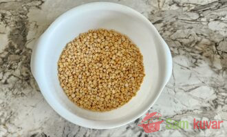- Operite grašak. Potopite ga i ostavite na sobnoj temperaturi 12 sati, pokrivši posudu poklopcem. Za to vreme grašak će nabubriti. Stavite nabubreli grašak u šerpu sa debelim dnom, prelijte vodom tako da nivo vode bude dva prsta iznad graška. Posolite. Zagrejte na jakoj vatri do ključanja, skidajući penu, zatim kuvajte na tihoj vatri pod poklopcem dok se grašak potpuno ne raskuva u pire. Pred kraj kuvanja povremeno mešajte da ispari višak tečnosti i da se pire ne uhvati za dno.