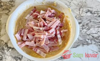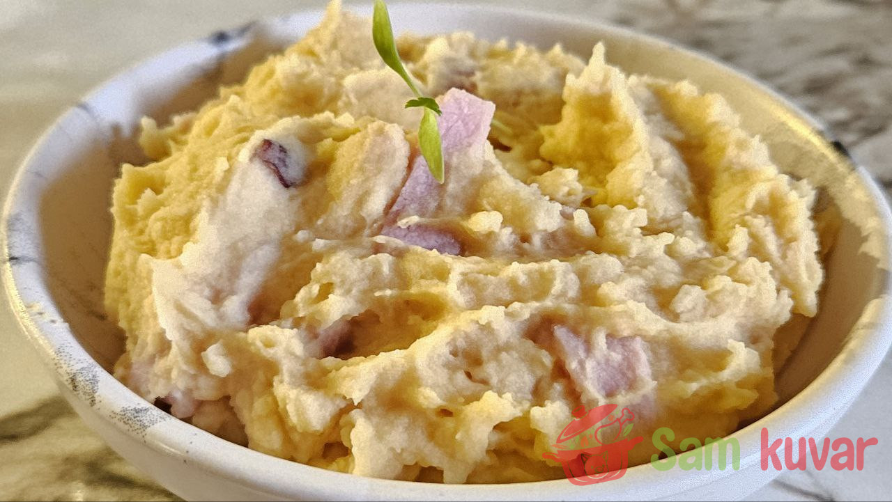 - Dodajte dimljeno meso u pire i dobro promešajte.