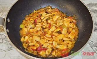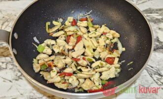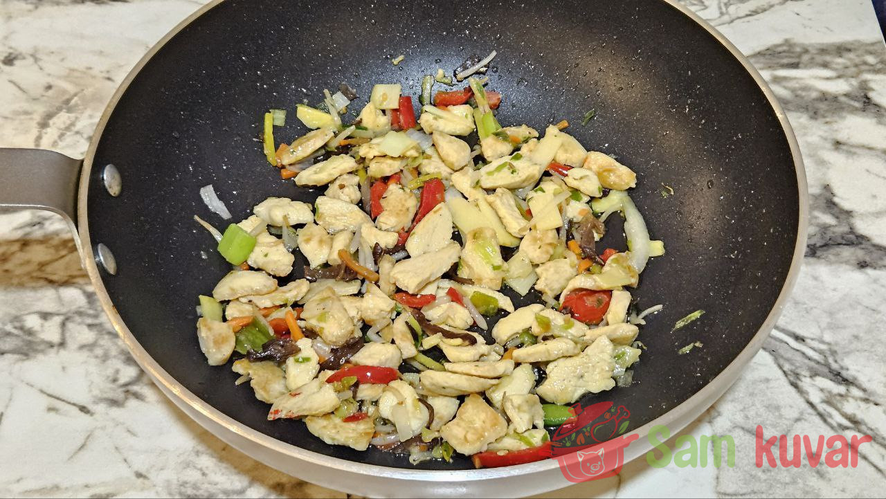 - Dodajte povrće piletini i pržite dok povrće ne omekša.