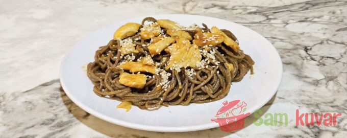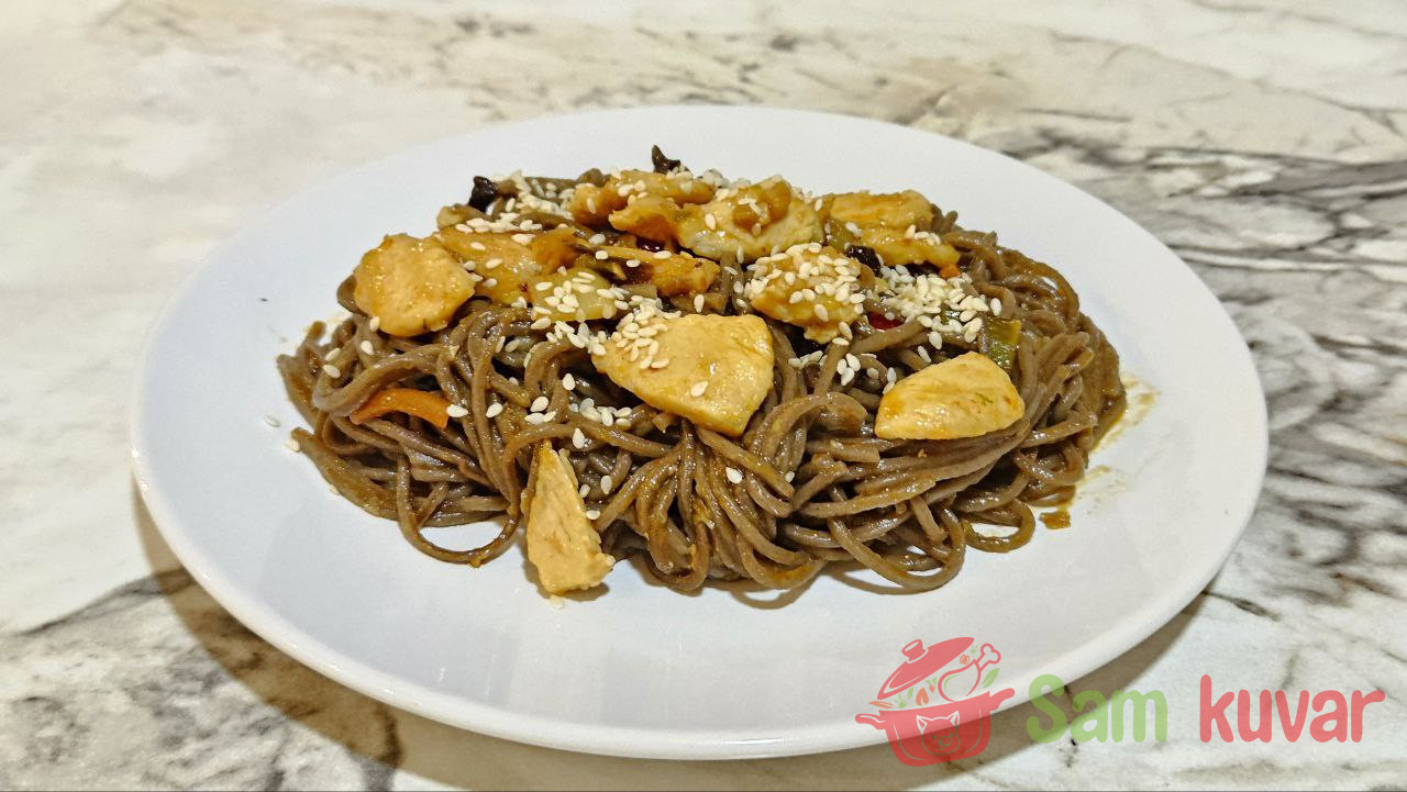 Rezanci sa piletinom u čili sosu — recept koji spaja slano, slatko i ljuto u kompaktnu, sasvim ukusnu kombinaciju.