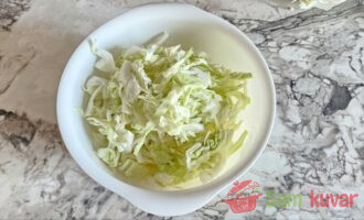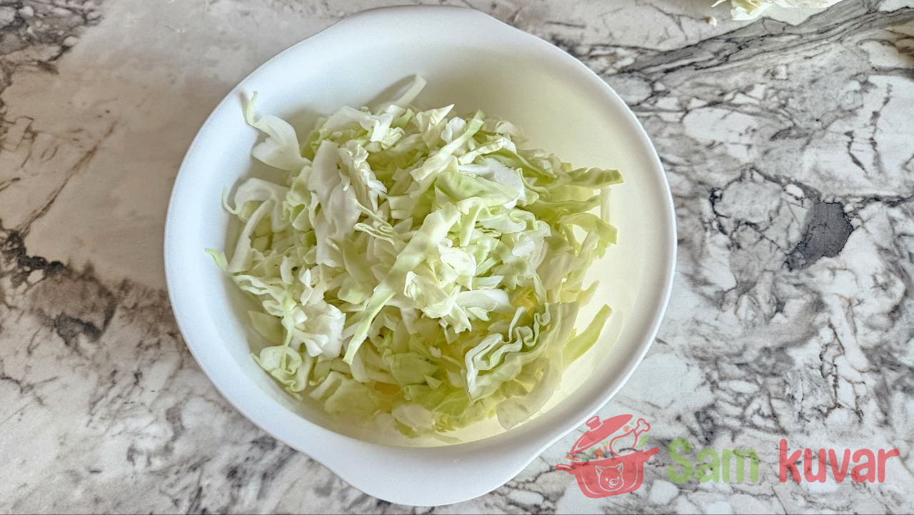 - Kada je meso kuvano, isecite kupus na trakice i dodajte u bujon. Kuvajte najmanje 30 minuta.