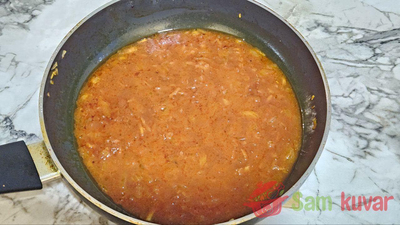 - Dodajte malo vode u zapršku i prodinstajte još 2 minuta.