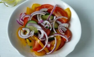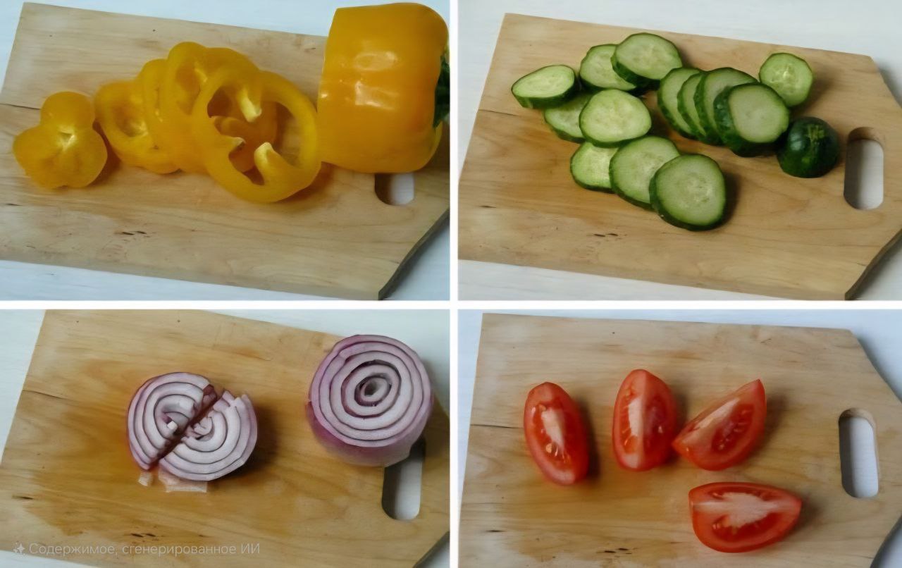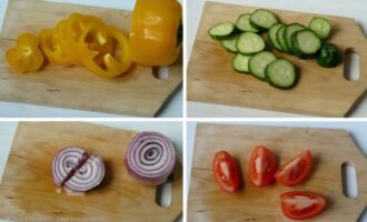 - Iseći povrće. Raspojasiti na tanjire.