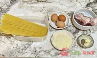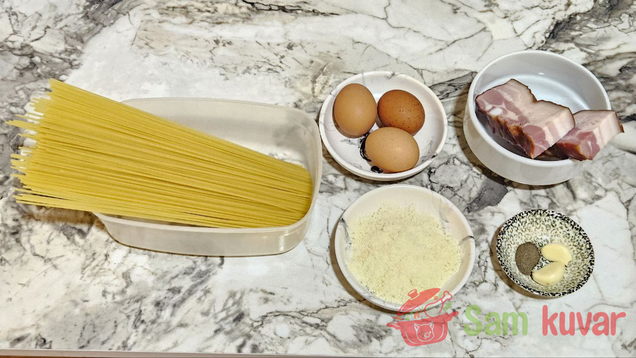 - Pripremite potrebne sastojke za pripremu špageta Carbonara.