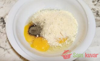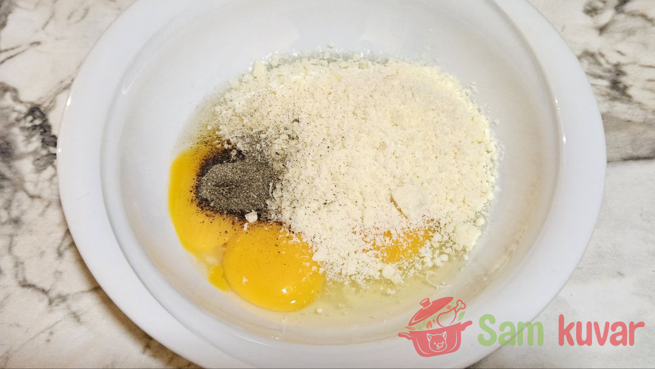 - Sada pripremamo sos. U činiji pomešajte 2 žumanca, jedno celo jaje, parmezan i mleveni biber.