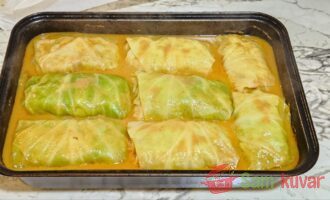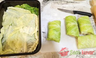 - Na dno posude za pečenje stavite preostale listove kupusa.