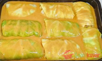 - U šerpi otopite maslac. Dodajte brašno i mešajte na tihoj vatri oko minut. Zatim dodajte paradajz pastu i dobro izmešajte. Dodajte papriku, so i biber, zatim pavlaku i ponovo izmešajte. Dodajte 3–5 kutlača vode u kojoj se kuvao kupus, promešajte i kuvajte kratko dok se ne zgusne. Sos je gotov.