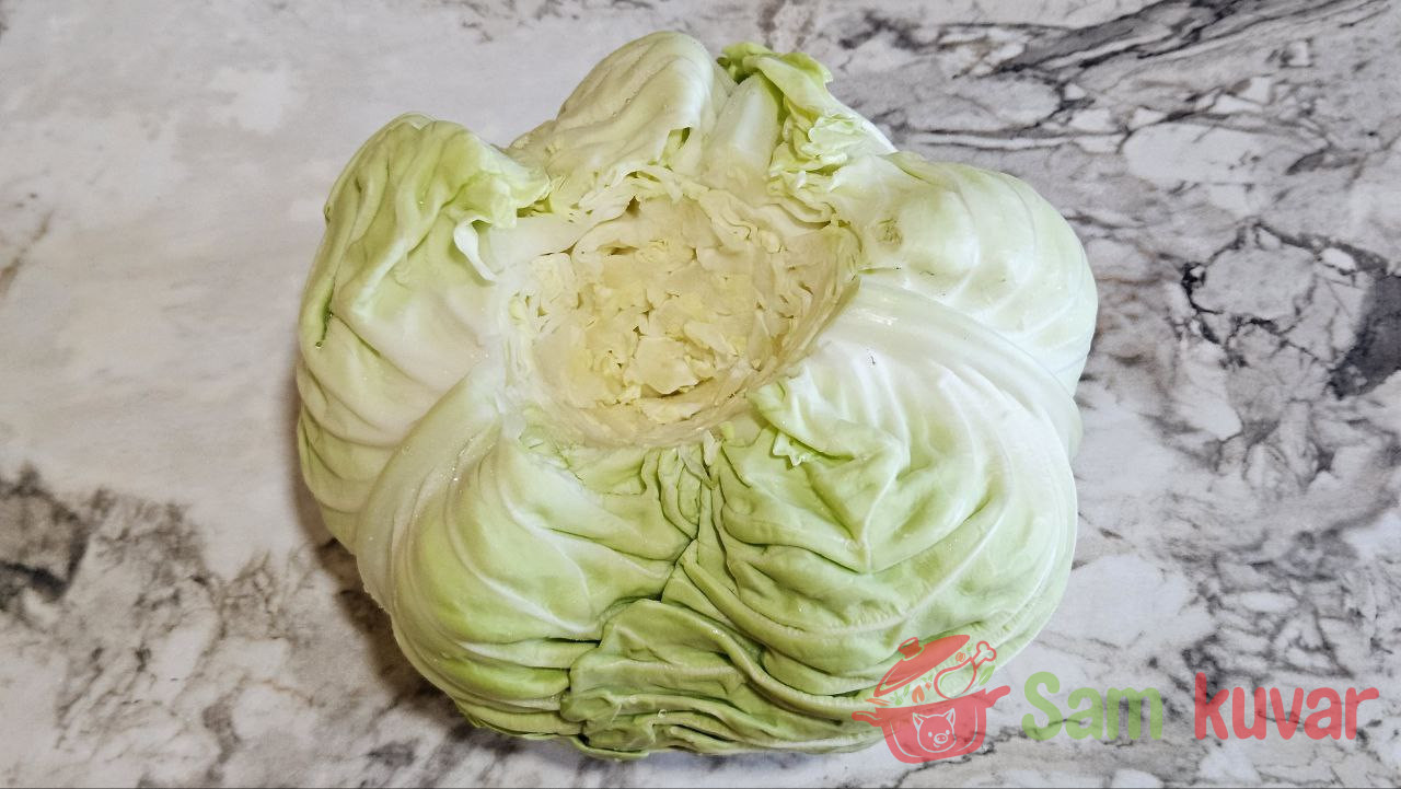 - Kod kupusa izrežite koren (kočanj). Uklonite oštećene i spoljašnje listove.