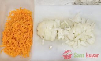 - Luk sitno isecite, a šargarepu izrendajte na krupno rende.